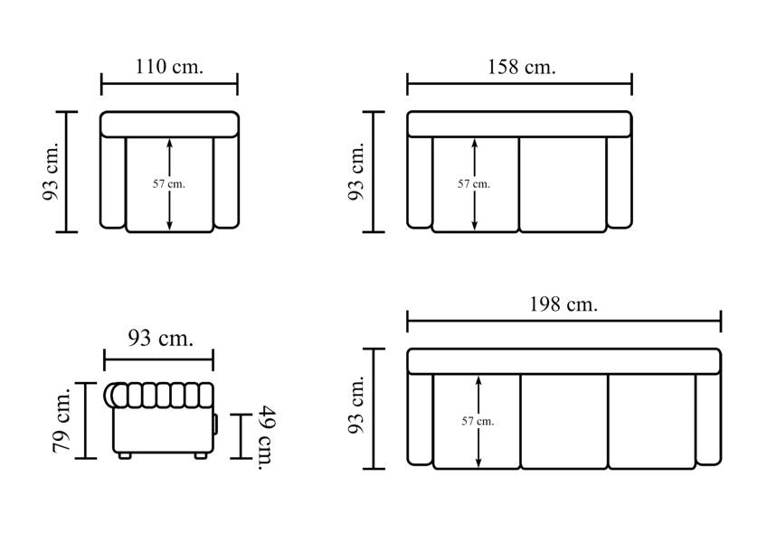 - Die Möbelstücke dieser Garnitur haben folgende Gewichte: Das 3er Sofa wiegt 62 kg, das 2er Sofa 53 kg und der Sessel 38 kg! Also absolut langlebige massive Möbel.