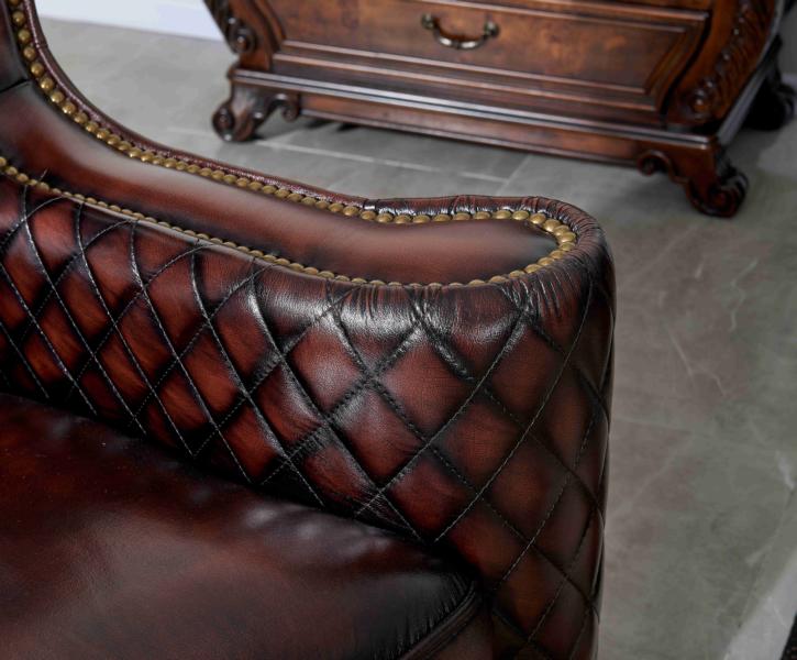 5.            Bei Chesterfield Modellen mit Ziernägeln in der Front sollten diese als Qualitätsmerkmal einzeln von Hand eingeschlagen sein.