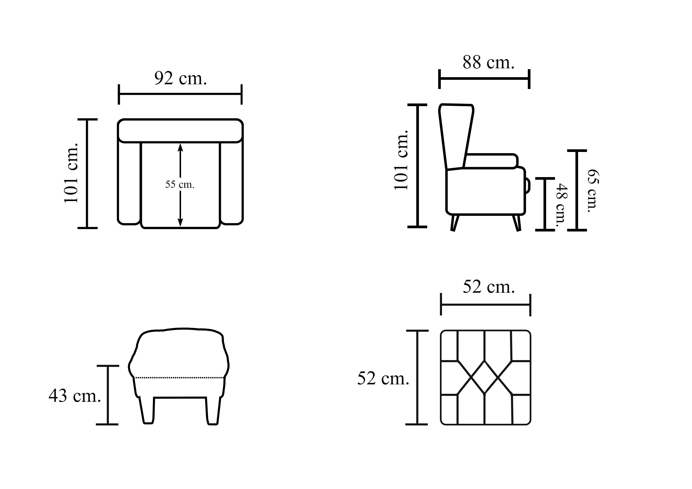 • Der Sessel hat folgendes Gewicht: 32 kg & des Hocker wiegt 8 kg! Also absolut langlebige und massive Möbelstücke.