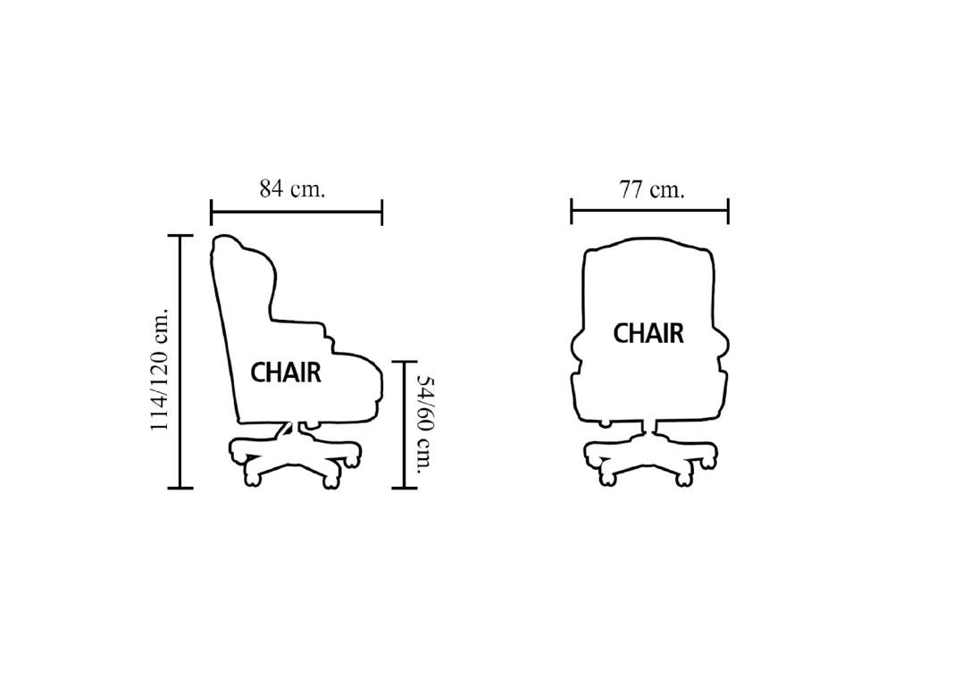 - Der Bürostuhl ist selbstverständlich höhenverstellbar. Siehe Maßskizze