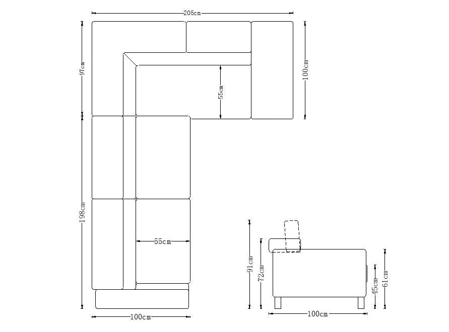 - Das Ecksofa wird mit drei klappbaren Kopfstützen ausgeliefert.