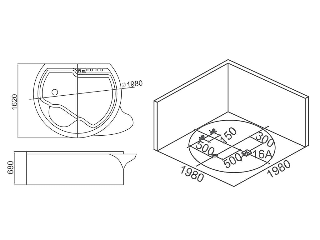 Die Maße vom freistehenden Perth betragen 198 x 162 x 68 cm. Der Pool beinhaltet: 1,5 KW Heizung, Schürzen rundum, 1,2 PS Wasserpumpe, 400 Watt Luftpumpe, zwei Kopfstützen, 31 Düsen, Ozonreinigung, etc. Vollausstattung.
