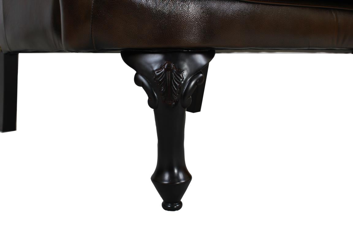 Der Chesterfield Ledersessel Modell Katerine besticht neben seinen ausgewogenen Proportionen durch seine gemütliche Polsterung (Taschenfederkern) und sorgfältig gearbeitete Details. Die einzeln von Hand eingeschlagenen Nägel und die von Hand angebrachten Lederknöpfe adeln diesen klassischen Ohrensessel nebst Lederhocker zu einem luxuriösem Schmuckstück. Eine echte Handwerkskunst! SONDERPREIS!