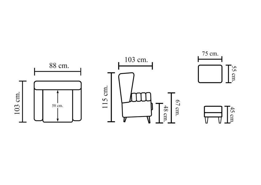 - Der Sessel hat folgendes Gewicht: 42 kg & des Hocker wiegt 11 kg! Also absolut langlebige und massive Möbelstücke.