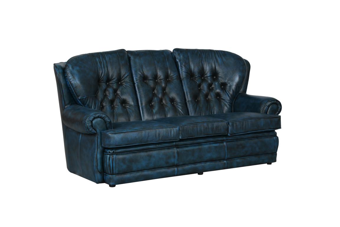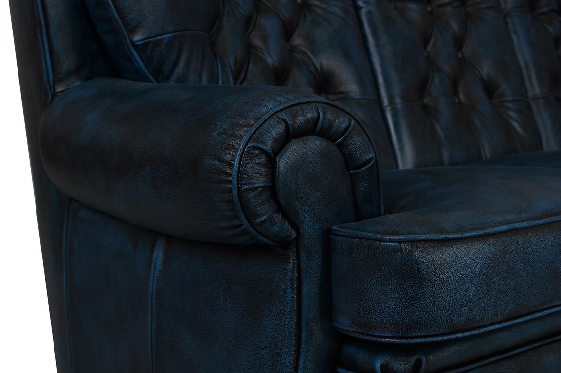 Auf Grund der Sitztiefe und Sitzhöhe bietet diese Chesterfield Garnitur einen komfortablen Sitzkomfort. Diese Garnitur wird vollständig von Hand in in Vollleder gefertigt.
