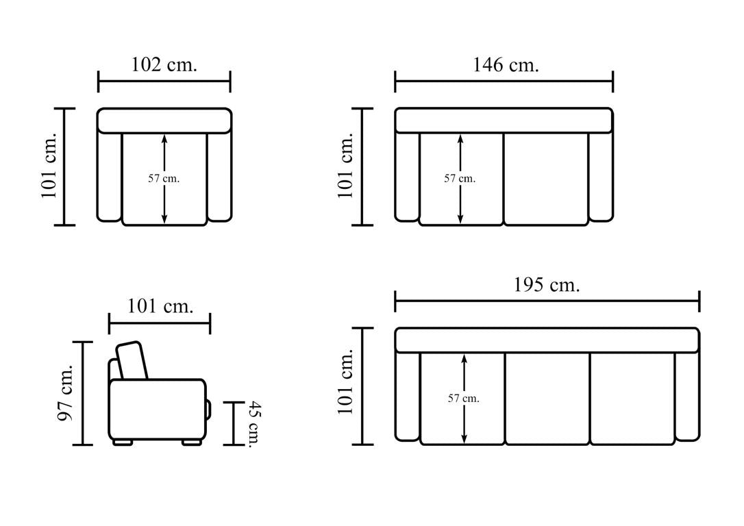 • Die Möbelstücke dieser Garnitur haben folgende Gewichte: Das 3er Sofa wiegt 72 kg, das 2er Sofa 56 kg und der Sessel 42 kg! Also absolut langlebige massive Möbel.