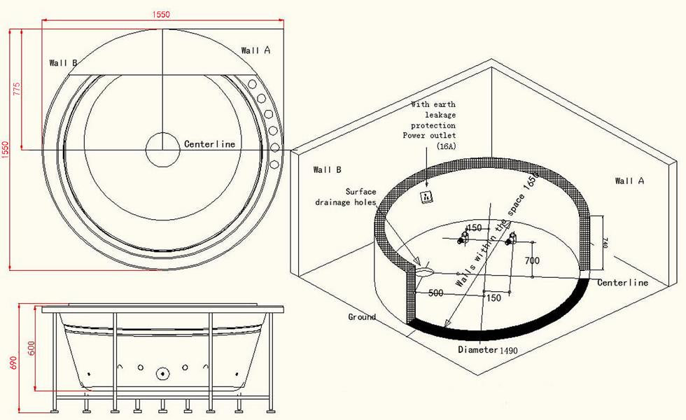 2. Die Whirlpools sollten für die Langlebigkeit mit dicken, durchfärbten und glasfaserverstärktem Sanitäracryl hergestellt werden.