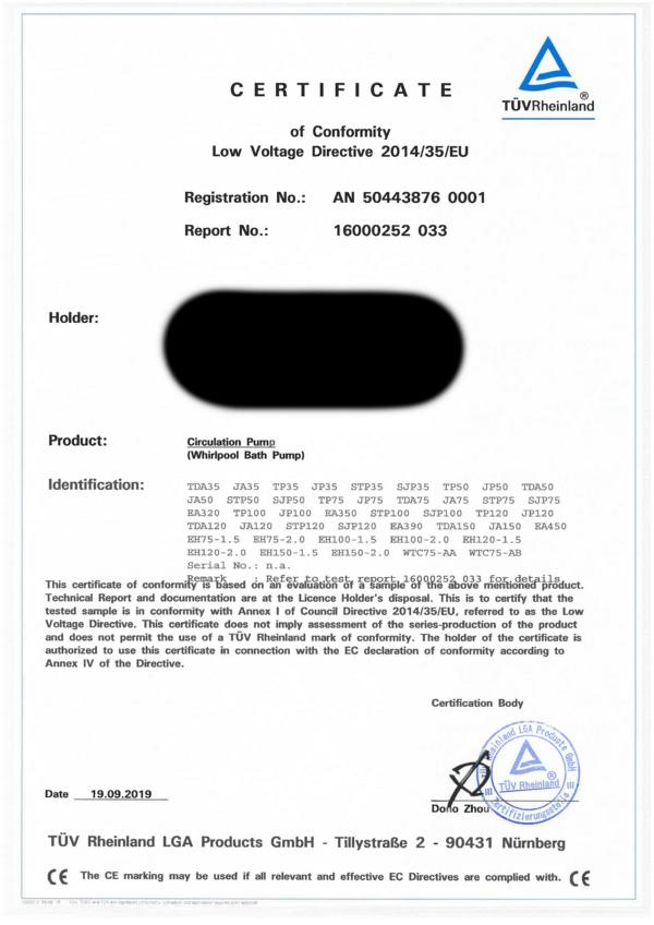1. Whirlpool Badewannen sollten für die verbauten Pumpen über TÜV-Zertifikate verfügen.