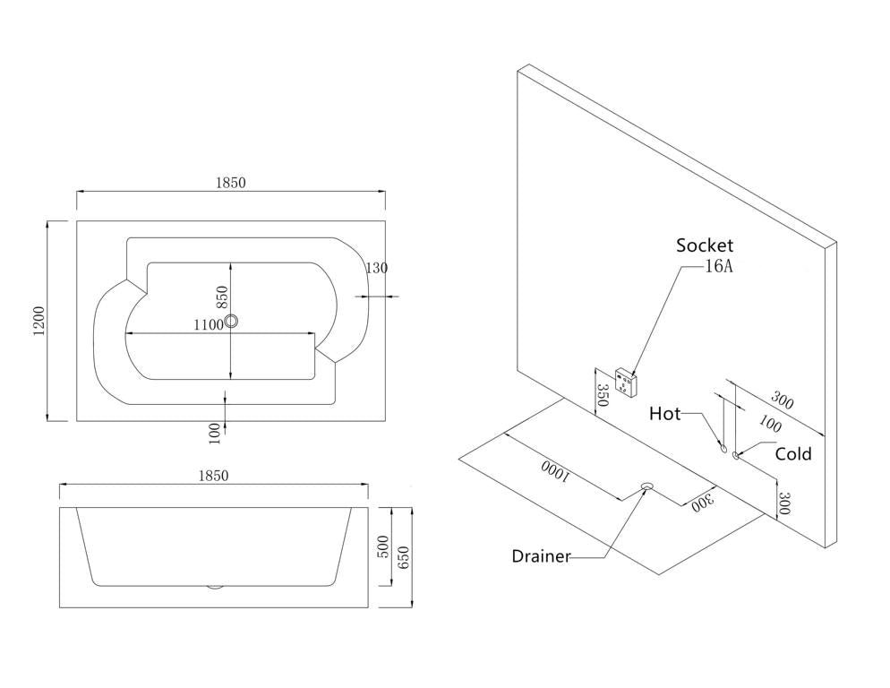 Die Maße vom Florida betragen 185 x 120 x 65cm. Der Pool beinhaltet: 1,5 KW Heizung, drei Schürzen, 1,5 PS Wasserpumpe, Fernbedienung, Farblichttherapie mit 18 Lichtern, Wasserzirkulation, Designer Kopfstützen, Wassereinlass über einen großen Design-Wasserhahn, Radio, Ozonreinigung, 54! Düsen etc. Vollausstattung.