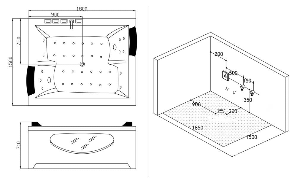 Die Maße vom Dubbo betragen 180 x 150 x 71cm. Der Pool beinhaltet: 1,5 KW Heizung, zwei Schürzen mit Sichtfenster, Echt-Holzrahmen, 1,5 PS Wasserpumpe, Fernbedienung, Farblichttherapie, Wasserzirkulation, 2 Kopfstützen, Radio, Ozonreinigung, 30! Düsen etc. Vollausstattung.