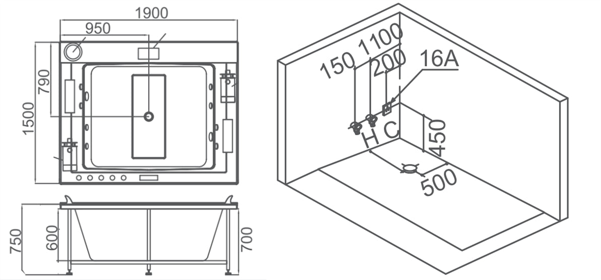 - Flexible Anschlüsse Warm- und Kaltwasser und Stromversorgung verfügen über ausreichend Spielraum für eine bequeme Montage. Wählen Sie die Länge der Flexschläuche je nach Position der Anschlüsse im Badezimmer. Einfach anschließen und den Pool in die Ecke schieben.