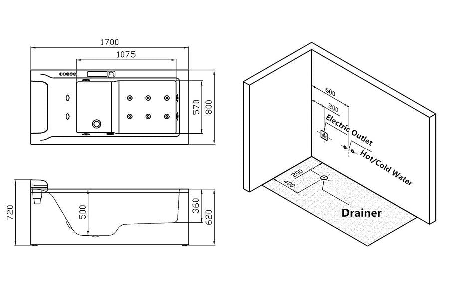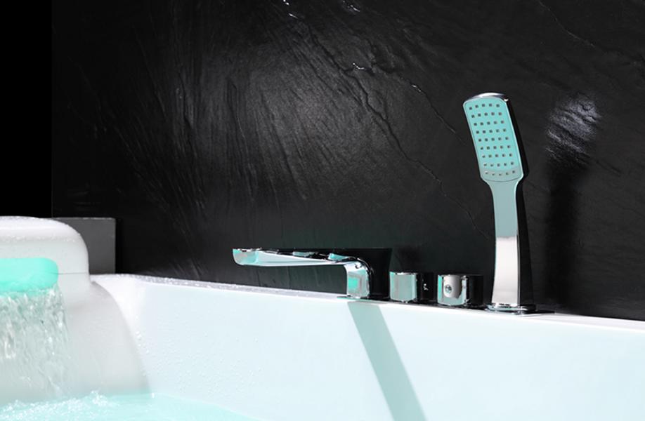- Flexible Anschlüsse für Warm- und Kaltwasser sowie Stromversorgung bieten ausreichend Spielraum für eine komfortable Installation. Wählen Sie die Länge der flexiblen Schläuche abhängig von der Position der Anschlüsse im Badezimmer. Einfach einstecken und den Pool in die Ecke schieben.